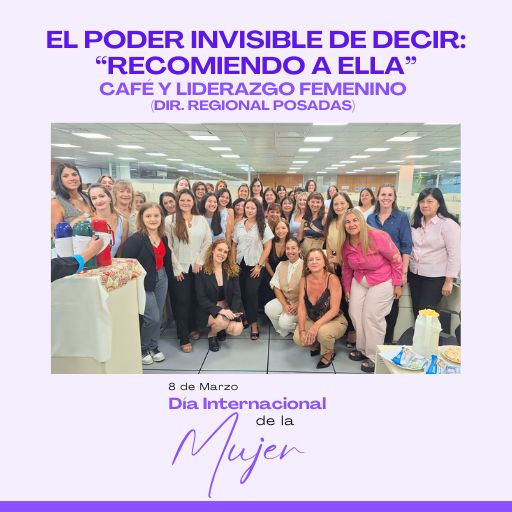 En el marco del 8M, se realizó un encuentro con las compañeras en la Dirección Regional Posadas, donde la Dra. María del Carmen Aguirre brindó la charla “El poder invisible de decir: Recomiendo a ella”, invitando a reflexionar sobre liderazgo femenino, comunicación y apoyo entre mujeres.